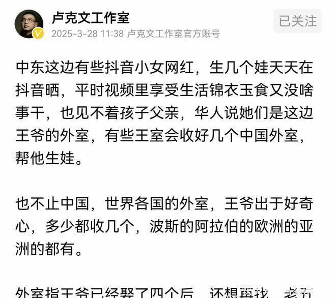 卢克文:中国一些女网红在中东给王室生个孩子,衣食无忧